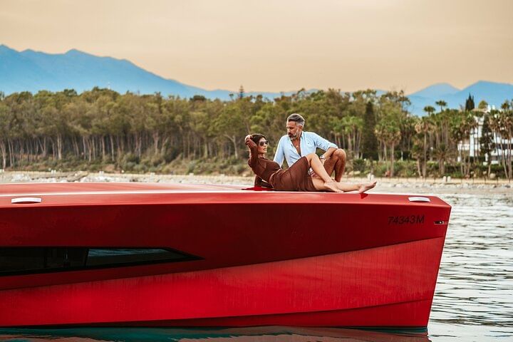 What sets our tour apart is the personalized experience we offer. This isn’t just a yacht ride – it’s a tailor-made luxury adventure. We depart from the heart of Marbella with exclusive routes, premium onboard service, and an intimate atmosphere, perfect for both relaxation and special celebrations. What truly makes us stand out is our yacht: it's one of the fastest in the marina, made of carbon fiber, which adds a thrilling, adrenaline-filled touch to the experience. Our crew focuses on every detail – from personalized drinks and music to the chance to see dolphins or enjoy an unforgettable sunset. Each tour is unique, because we design it around what our guests want to experience